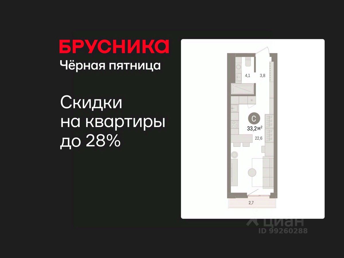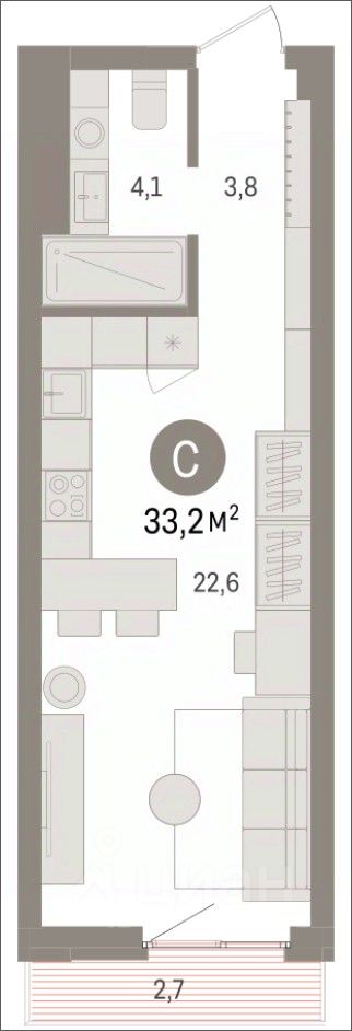 Студия в квартале "Траектория". Особенности планировки: предчистовая отделка, балкон.