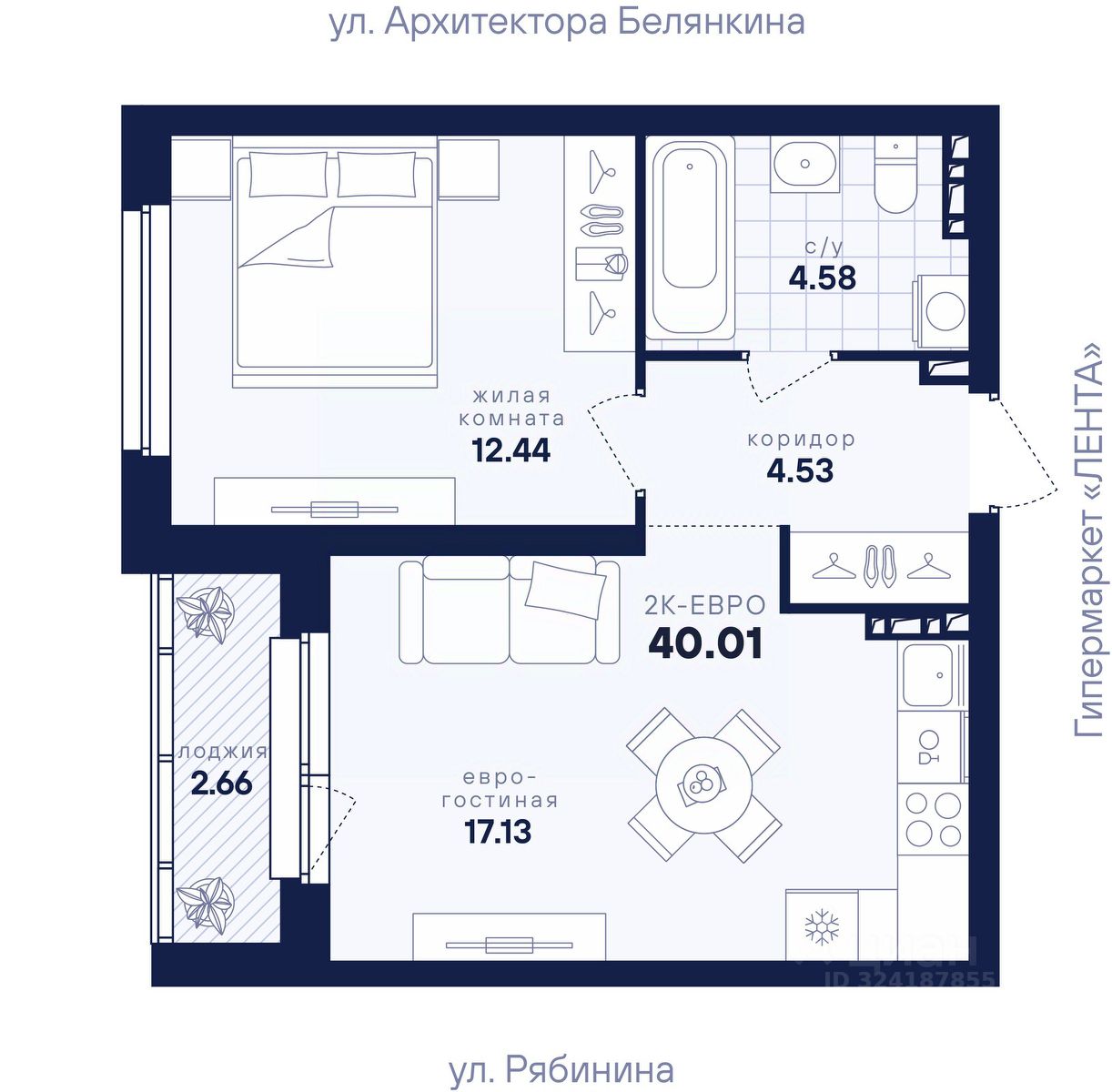 Общая площадь40,01 м²