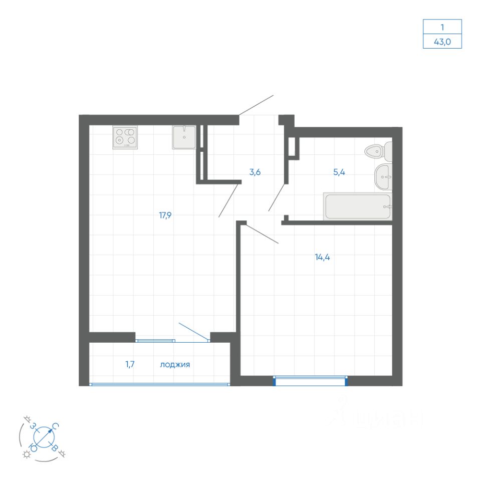 Общая площадь43 м²