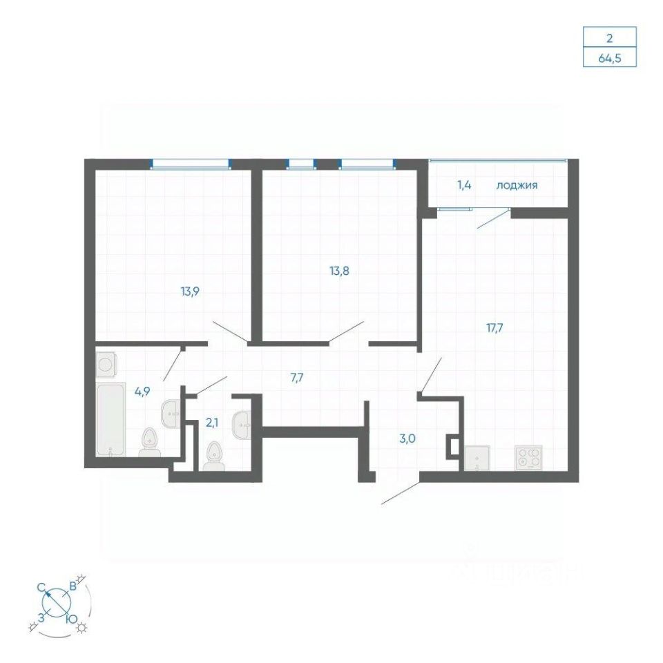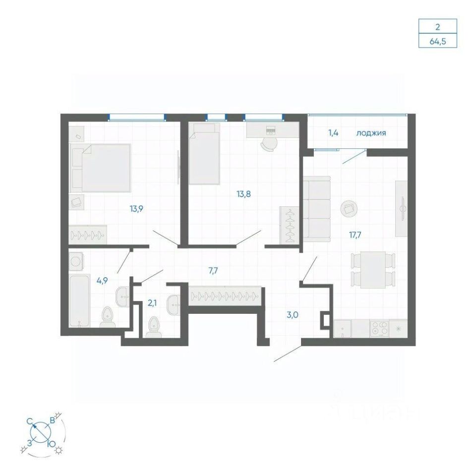 Общая площадь64,5 м²