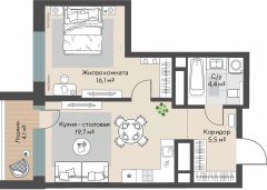 Продаётся 1-комнатная квартира в строящемся доме (Дом 1 этап 1.1), срок сдачи: I-кв. 2028, общей площадью 47.8 кв.м., на 22 этаже.