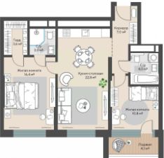 Продаётся 2-комнатная квартира в строящемся доме (Дом 1 этап 1.1), срок сдачи: I-кв. 2028, общей площадью 69.7 кв.м., на 27 этаже.