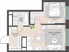 Продаётся 1-комнатная квартира в строящемся доме (Дом 2 этап 1.2), срок сдачи: I-кв. 2028, общей площадью 44.5 кв.м., на 24 этаже.