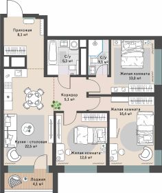 Продаётся 3-комнатная квартира в строящемся доме (Дом 2 этап 1.2), срок сдачи: I-кв. 2028, общей площадью 88.2 кв.м., на 7 этаже.