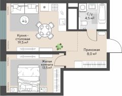 Продаётся 1-комнатная квартира в строящемся доме (Дом 2 этап 1.2), срок сдачи: I-кв. 2028, общей площадью 45.5 кв.м., на 12 этаже.