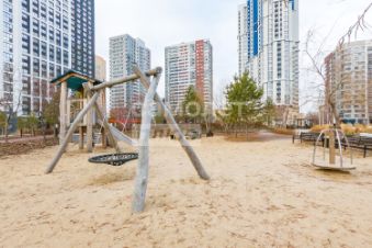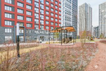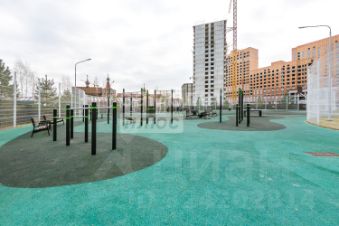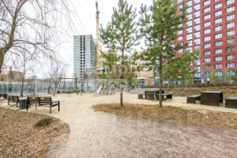 Квартира находится в современном ЖК с большой зеленой зоной площадью в 1 га (летом все усажено цветами и кустарниками). Внутри двора много игровых зон для детей, также есть спортивные площадки (турники, теннисный стол, баскетбольное и футбольные поля) и зоны для тихого отдыха (скамейки, качели, беседки т.д).