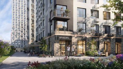 Разноуровневые террасы, французские балконы и панорамное угловое остекление — особенность проекта. Архитектурная подсветка акцентно выделяет квартал в локации.