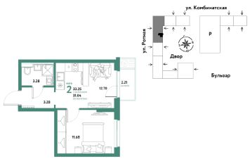 2комнатная квартира площадью 33,25кв. м. на 5 этаже жилого комплекса "Уральский сад".