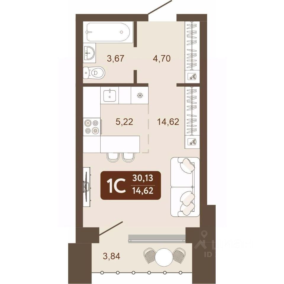Общая площадь30,13 м²
