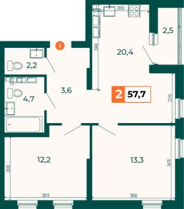 Продаётся 2-комнатная квартира в строящемся доме (Дом 1.4), срок сдачи: IV-кв. 2028, общей площадью 57.7 кв.м., на 6 этаже. Квартал "Отрадный" возводится в новой части ВИЗа. В 15 минутах ходьбы находятся 4 детских сада, 4 школы и 5 центров развития для дошколят. За 5 минут можно дойти до ТРЦ "Радуга-Парк" с кинотеатром и живописным парком аттракционов.