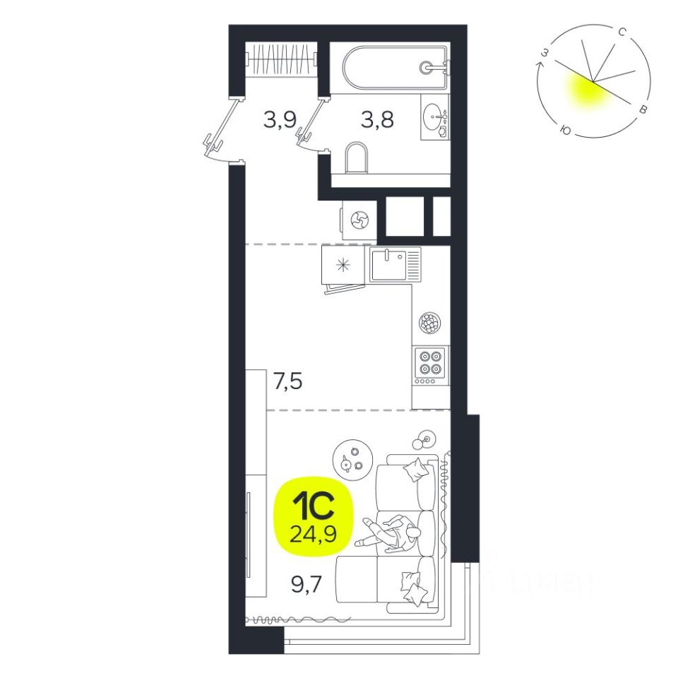 Общая площадь24,9 м²