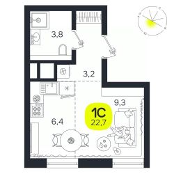 Квартал состоит из четырех 27-этажных домов. В домах — уютные студии, однокомнатные, двухкомнатные, семейные трехкомнатные квартиры. А для ценителей редких форматов квартиры с террасами. Парадный вестибюль с камином и кафе, двор с лаунж-зонами, фонтаном, сенсорным садом, детскими и спортивными площадками внутри.