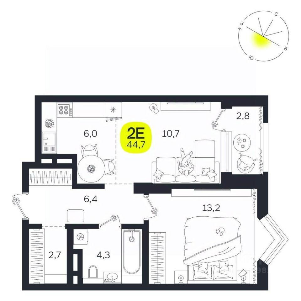 Общая площадь44,7 м²