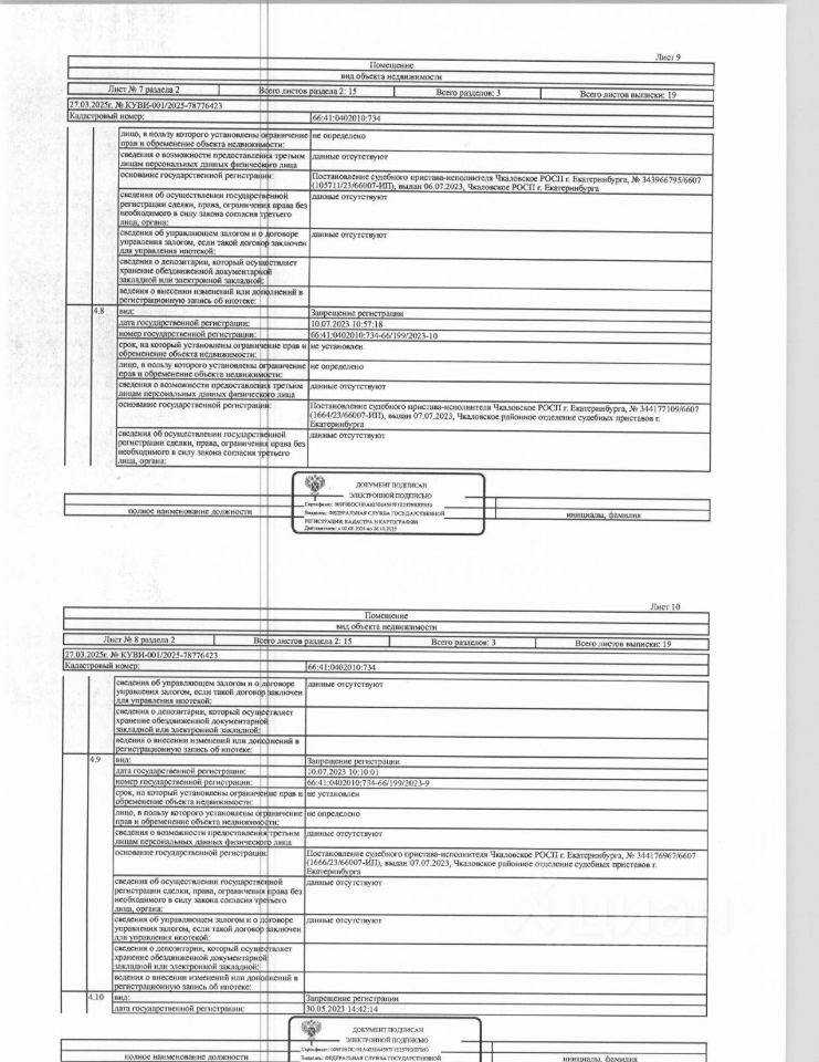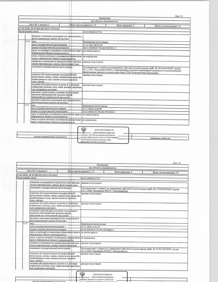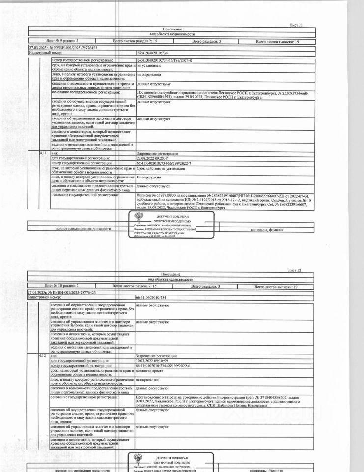 Должник: Печинин И.Ю., Печинин Ю.Б., Собственник: Печинин И.Ю., Печинин Ю.Б. Лот: Жилое помещение (квартира), площадь 29,6 кв.м., кадастровый номер: 66:41:0402010:734, г. Екатеринбург, ул. Отто Шмидта, д. 139, кв. 36, (зарегистрированные лица - 3 взрослых), н/ц: 2600000 р, з-к: 2600 р, код: 0014, рег. 07-932/25