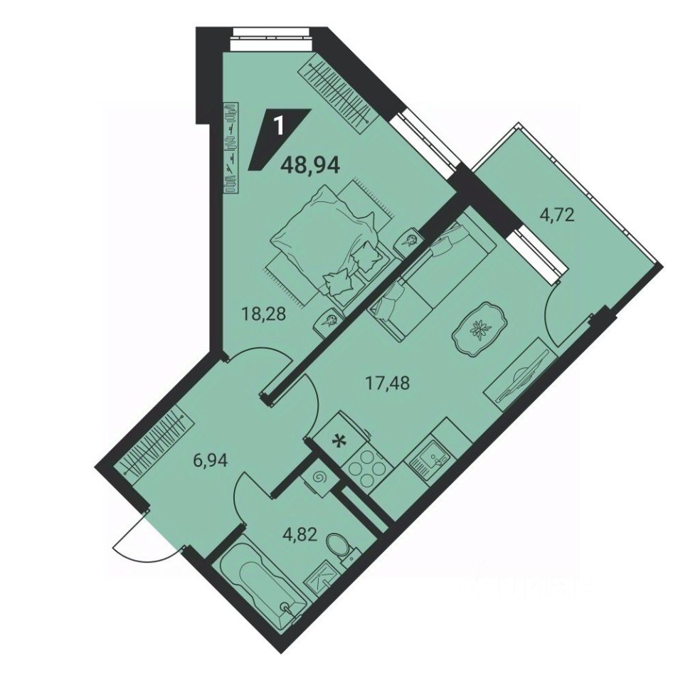 Общая площадь48,5 м²