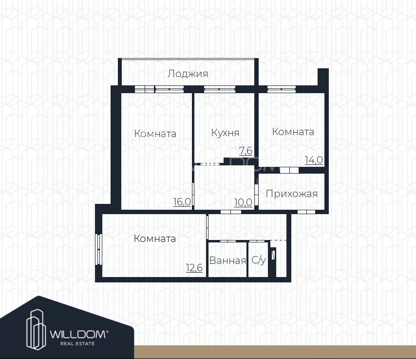 * Функциональная планировка: комнаты площадью 16,0 м2, 14,0 м2 и 12,6 м2, кухня 7,6 м2 - отличный вариант для молодой семьи.
