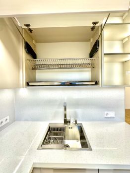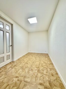 В квартире сделан капитальный ремонт, полностью заменена электропроводка, канализационные и водопроводные трубы, сделана новая стяжка полов, заменены все окна, батареи, стены выровнены и заново отштукатурены, высота потолков 2,6 метра. Новый кухонный гарнитур с новой техникой, кондиционер. Ремонт делали для себя, нанимали строительную бригаду. После ремонта никто не жил, продаем т.к. изменились планы. Фото ремонта приложены. Дом кирпичный, перекрытия железобетонные.