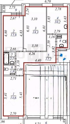 - В квартире аж 3 санузла, один из них можно использовать под гардеробную или хозблок