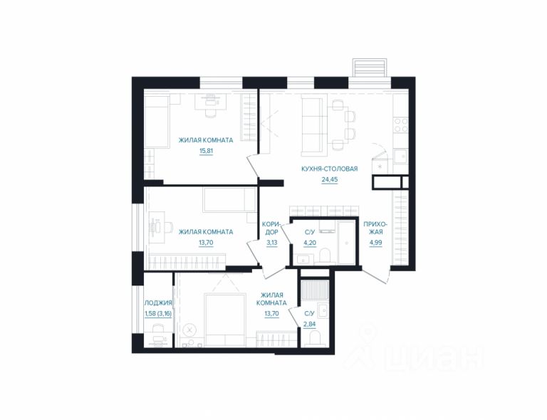 Продаётся 3-комнатная квартира в сданном доме (Энтузиастов, 18 (Секция 1)), срок сдачи: IV-кв. 2025, общей площадью 84.52 кв.м., на 20 этаже. Доминанта - новый проект девелопера Forum в северной части Екатеринбурга.