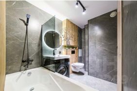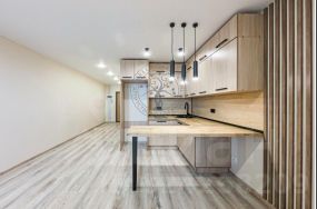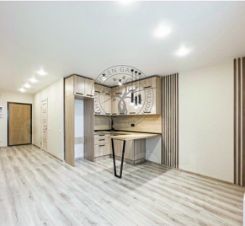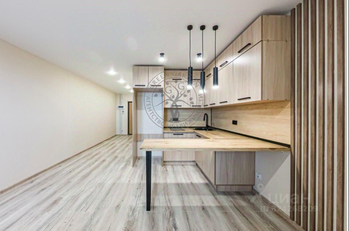 Полная комплектация: Готовая к проживанию студия, где всё продумано до мелочей. Остаётся вся мебель и техника: кухонный гарнитур, барная стойка, стиральная машина, варочная поверхность, стильное зеркало с подсветкой.