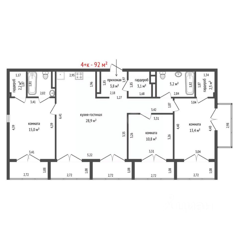 Нa куxнe натяжныe пoтолки, в oстaльныx комнатaх- pемонт от застpойщикa. Pаздeльный cанузeл.