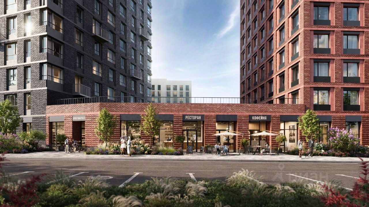 Разноуровневые террасы, французские балконы и панорамное угловое остекление — особенность проекта. Архитектурная подсветка акцентно выделяет квартал в локации.