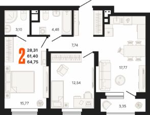Продаётся 3-комнатная квартира в строящемся доме (Дом 1.1), срок сдачи: IV-кв. 2025, общей площадью 64.75 кв.м., на 6 этаже. "Гранит" - это современный жилой комплекс расположенный у Шарташского лесопарка и озера Шарташ - жемчужины Екатеринбурга.