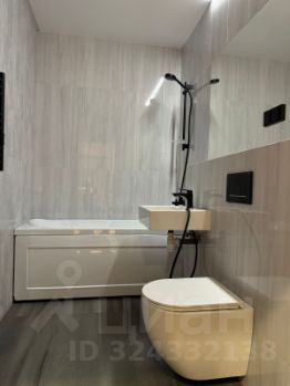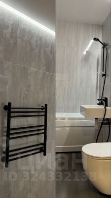 Просторный санузел, в котором свободно разместилась большая ванна с зоной бортов против образования плесени, унитаз со скрытой инсталляцией, раковина с тумбой, полотенцесушитель, подготовлено место для стиральной машины, выполнена подводка коммуникаций, пол с подогревом.