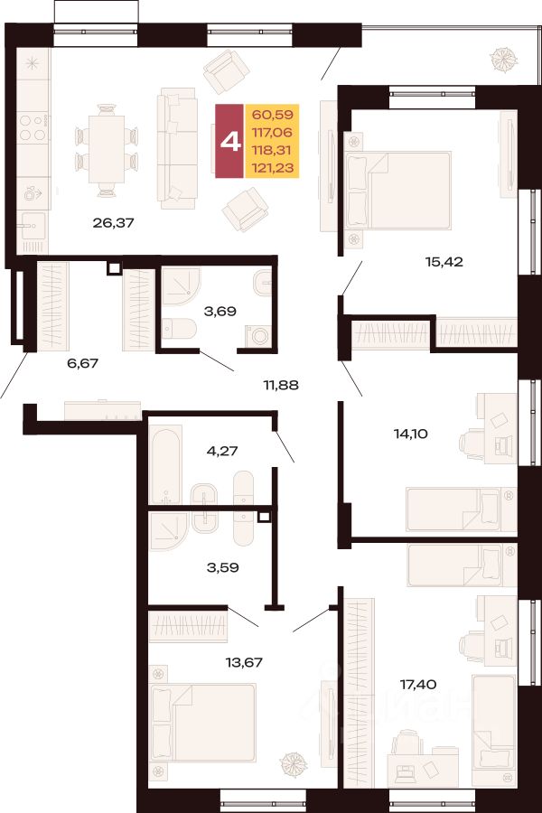 Продается Многокомнатная квартира площадью 121.23 кв.м. на 2 этаже. Квартира в ЖК "Первый Южный" располагается в центральной части перспективного микрорайона, в границах улиц Шаумяна, Амундсена, Волгоградской и Советских Женщин с отличной транспортной доступностью, близостью к центру и развитой социальной инфраструктурой.