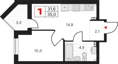 Продаётся 1-комнатная квартира в строящемся доме (Дом 1.1), срок сдачи: IV-кв. 2026, общей площадью 34.97 кв.м., на 12 этаже.