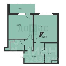 В продаже большая однокомнатная квартира общей площадью 46,3 кв. м.