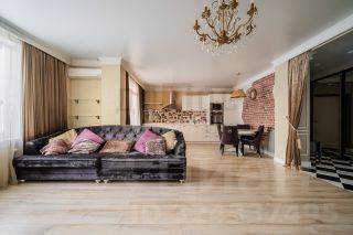 Общее пространство кухни-столовой-гостиной 36 кв.м, с выходом на лоджию