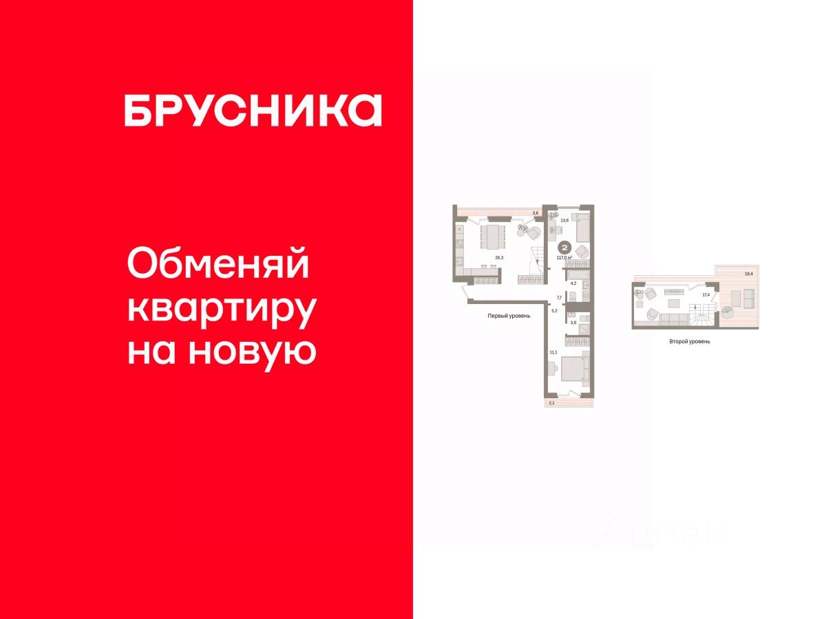 Двухуровневая квартира с кухней-гостиной и двумя спальнями в Южных кварталах. Особенности планировки: вид во двор, гардеробная, двухуровневая, летняя кухня на крыше, мастер-спальня, предчистовая отделка, разнесённые спальни, терраса на крыше.