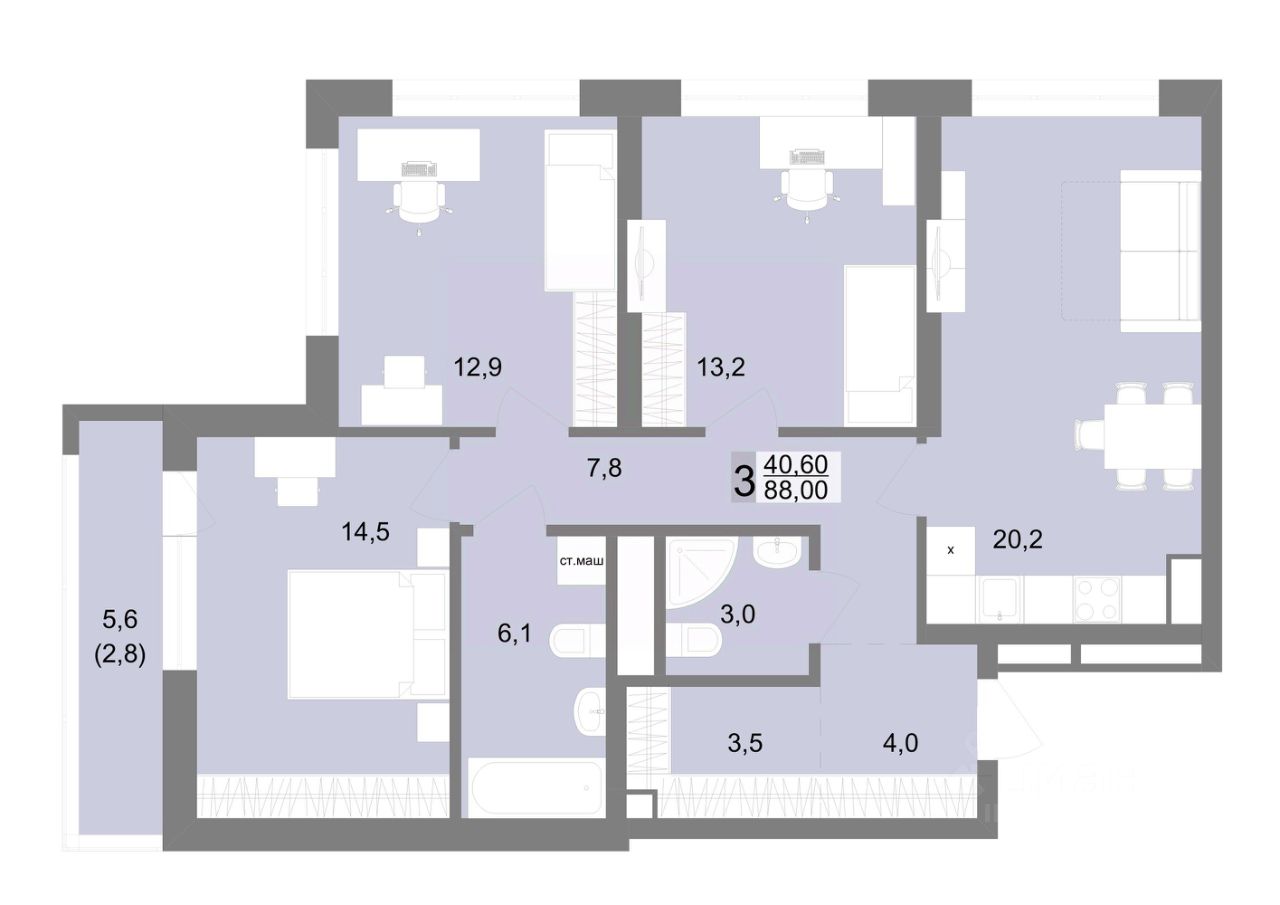 Общая площадь88 м²