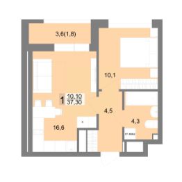 Общая площадь37,3 м²