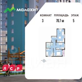 Квартира располагается на 5 этаже 15-этажного дома в ЖК Малахит.