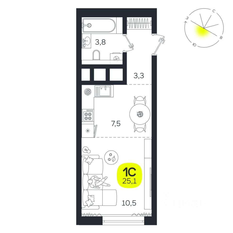 Общая площадь25,1 м²
