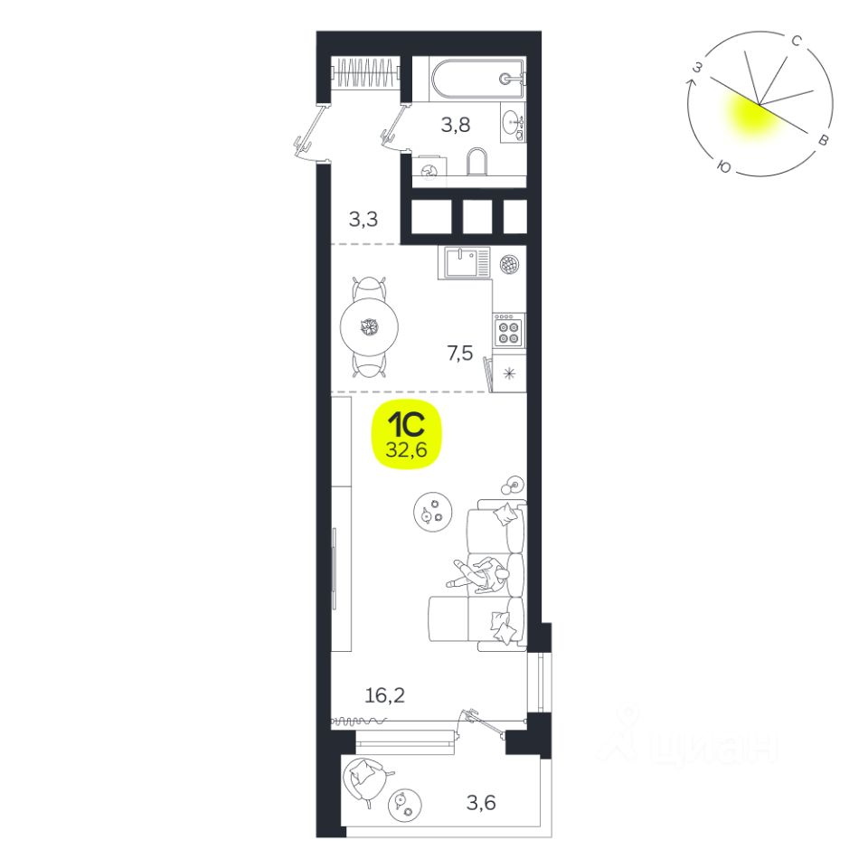 Общая площадь32,6 м²