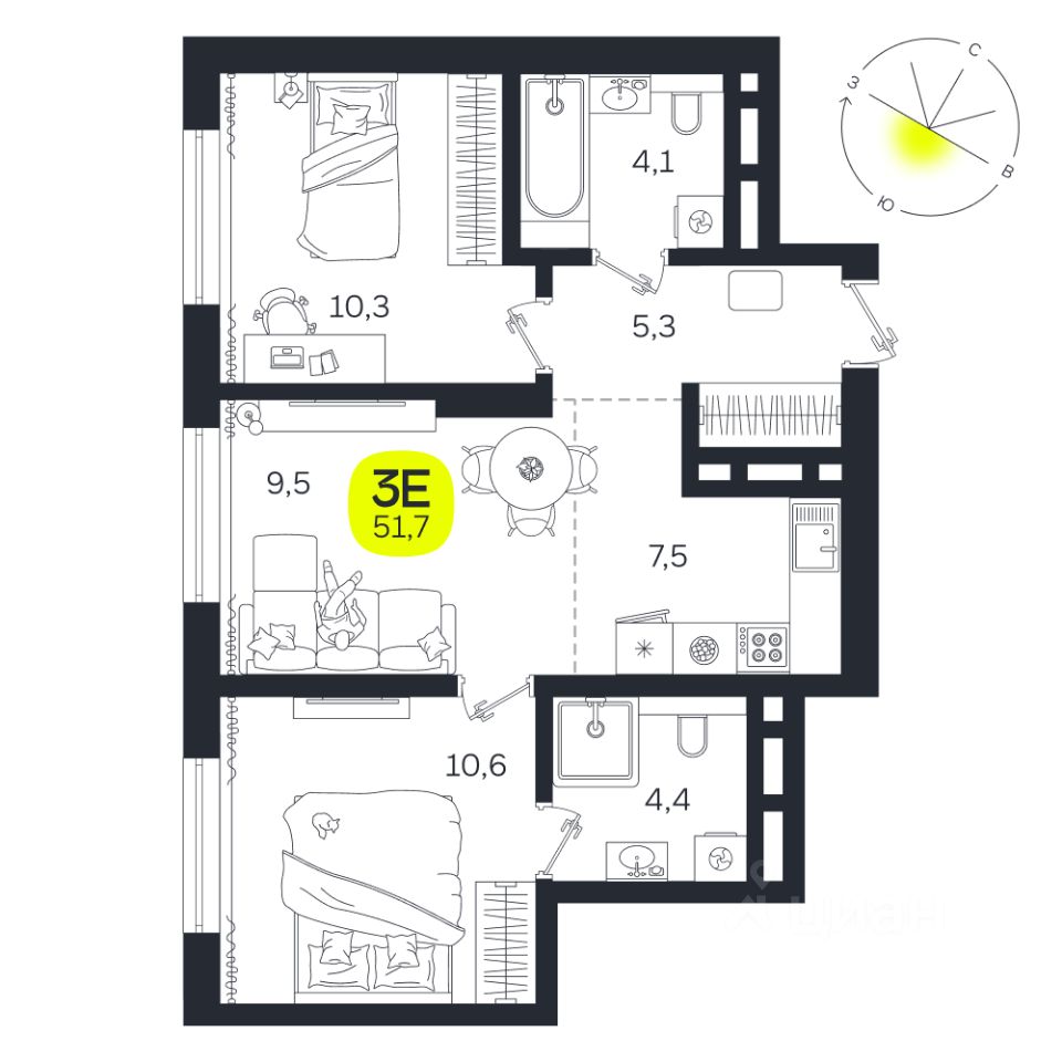 Квартал состоит из четырех 27-этажных домов. В домах — уютные студии, однокомнатные, двухкомнатные, семейные трехкомнатные квартиры. А для ценителей редких форматов квартиры с террасами. Парадный вестибюль с камином и кафе, двор с лаунж-зонами, фонтаном, сенсорным садом, детскими и спортивными площадками внутри.