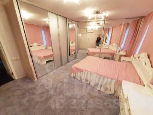 - Большая спальня оформлена в розовых тонах. Аккуратно расположены огромные шкафы-купе/гардеробные с зеркалами.