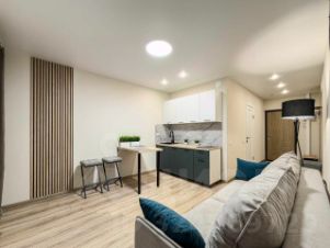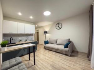 Отличная студия с современным ремонтом "под тапочки", выполненным из качественных материалов, расположенная в привлекательной части города, всего в 15 минутах езды от центра на общественном транспорте!