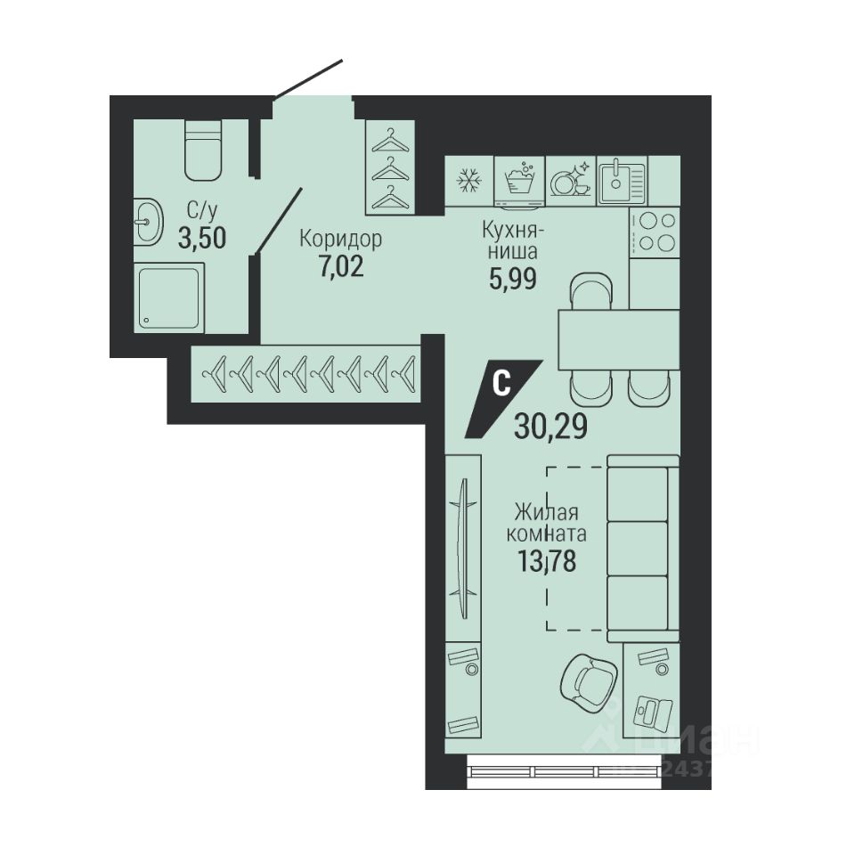 Квартирография от 39,4 м² до 101,7 м². Есть варианты с окнами в два направления, гардеробными, прачечными, просторными кухнями-гостиными и террасами.