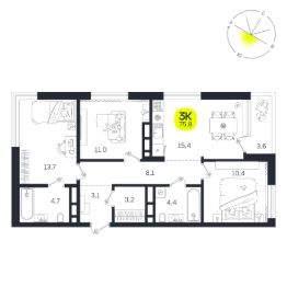 Общая площадь75,8 м²