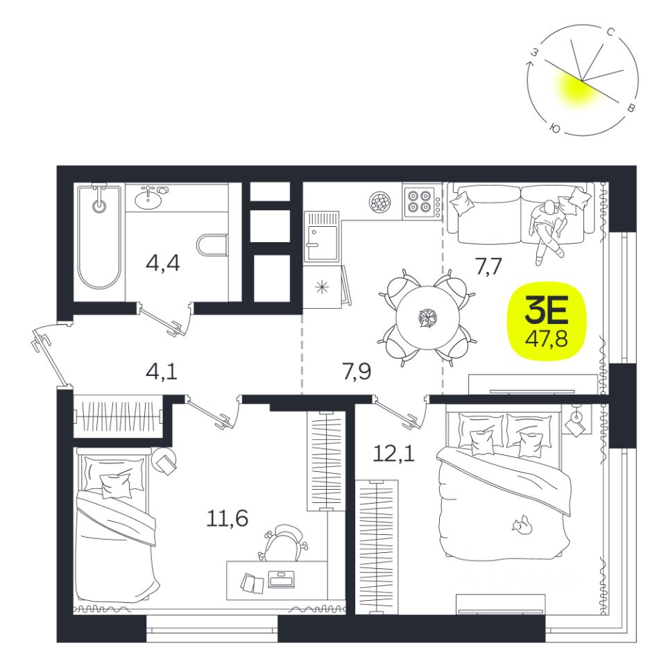 Общая площадь47,8 м²
