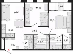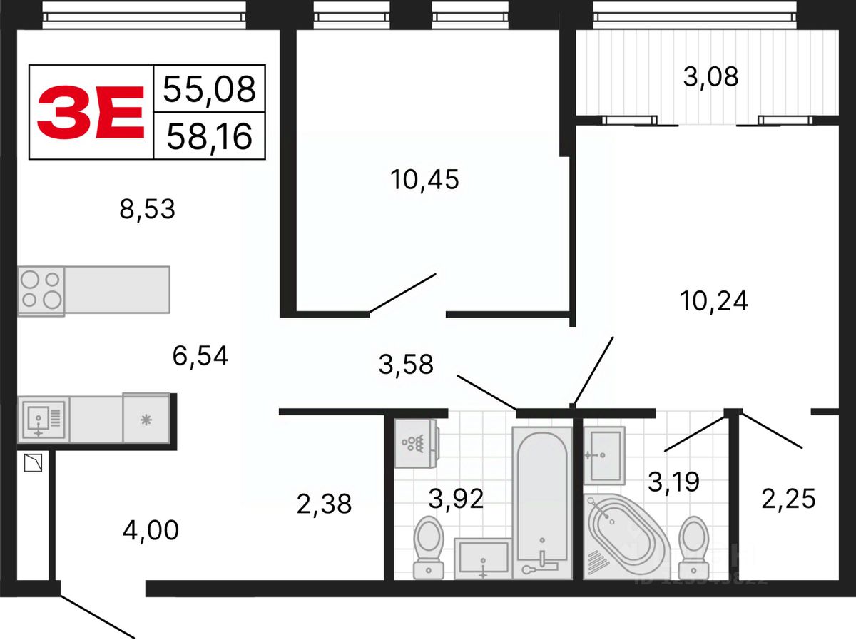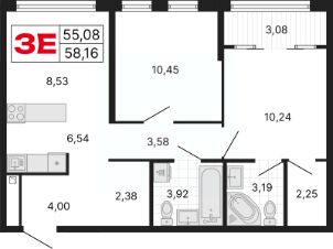 Просторная 3-комн. квартира с европланировкой и отделкой в ЖК "ДНК. Дом на Куйбышева" на 24 этаже. Общая площадь: 58.19 кв.м., жилая: 29.22 кв.м., общая площадь гостиной-столовой с кухонной зоной: 15.07 кв.м. Европланировка, кухня-гостиная - идеальный вариант для тех, кто любит часто принимать гостей. Комнаты изолированные, все окна выходят на одну сторону. В квартире одна лоджия, два совмещенных санузла. Высота потолков 2.7 м.