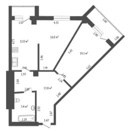 Удобная планировка с возможностью сделать вторую комнату изолированной адаптируйте пространство под свои нужды!