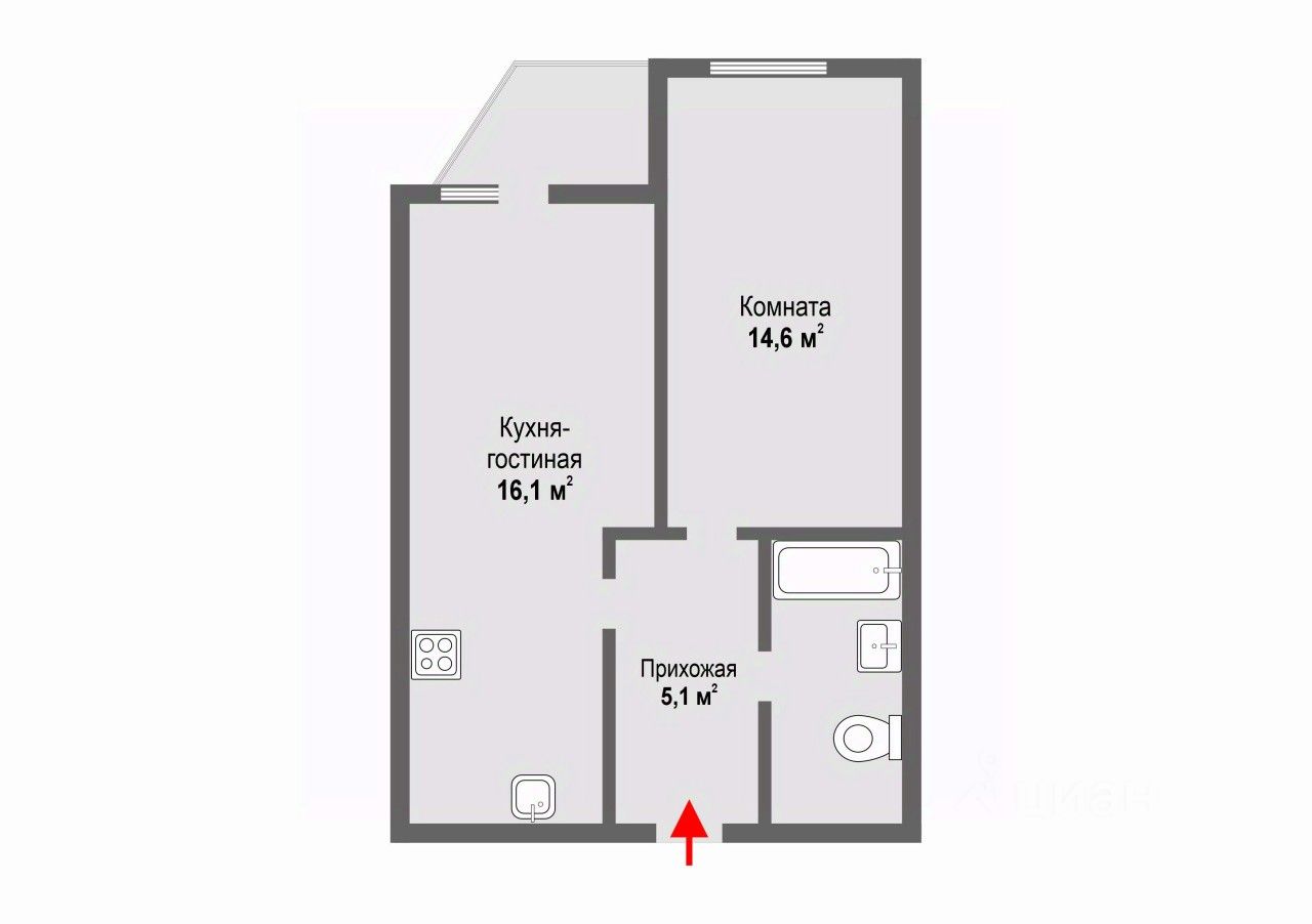 Актуальная планировка с кухней-гостиной 16,1 метров и просторной комнатой 14.6 -