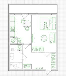 - В стоимость входят: встроенный кухонный гарнитур, шкаф-купе в комнате, кровать