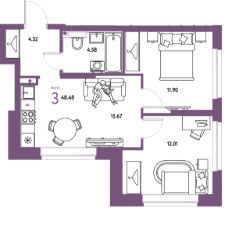 Продаётся 3-комнатная квартира в строящемся доме (Потенциал), срок сдачи: IV-кв. 2027, общей площадью 48.48 кв.м., на 8 этаже. Новый жилой комплекс "Страна.Энтузиастов" от группы компаний "Страна Девелопмент" расположен по адресу: г. Екатеринбург, по ул. Шефская.