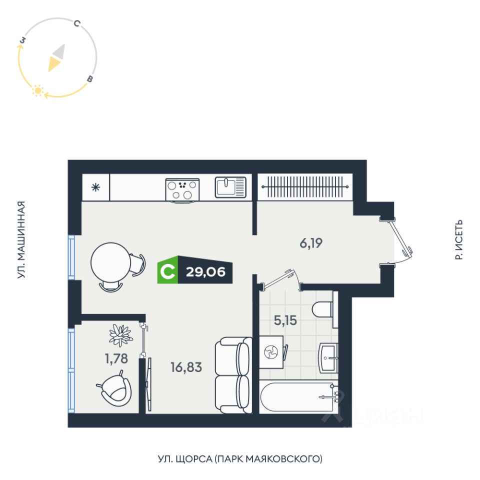 Продаётся студия в строящемся доме (Дом 8 (17А-17В)), срок сдачи: III кв. 2027, общей площадью 29.06 кв.м., на 12 этаже. В жилом квартале есть собственный выход в ЦПКиО им. Маяковского для утренних пробежек и отдыха всей семьёй.